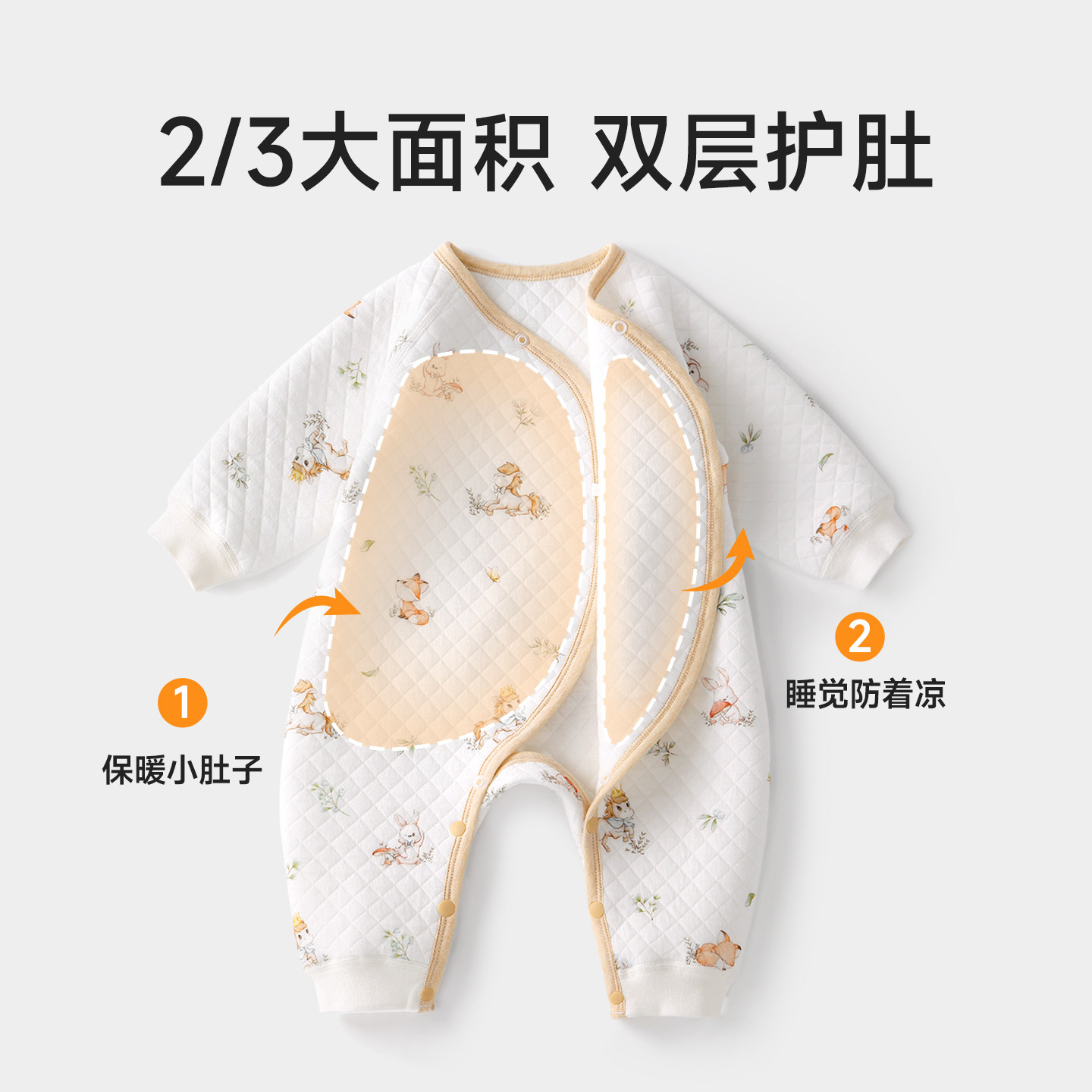 贝肽斯婴儿薄夹棉连体衣冬装外出新生幼儿宝宝衣服保暖空气棉睡衣