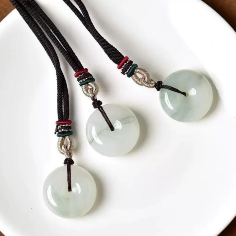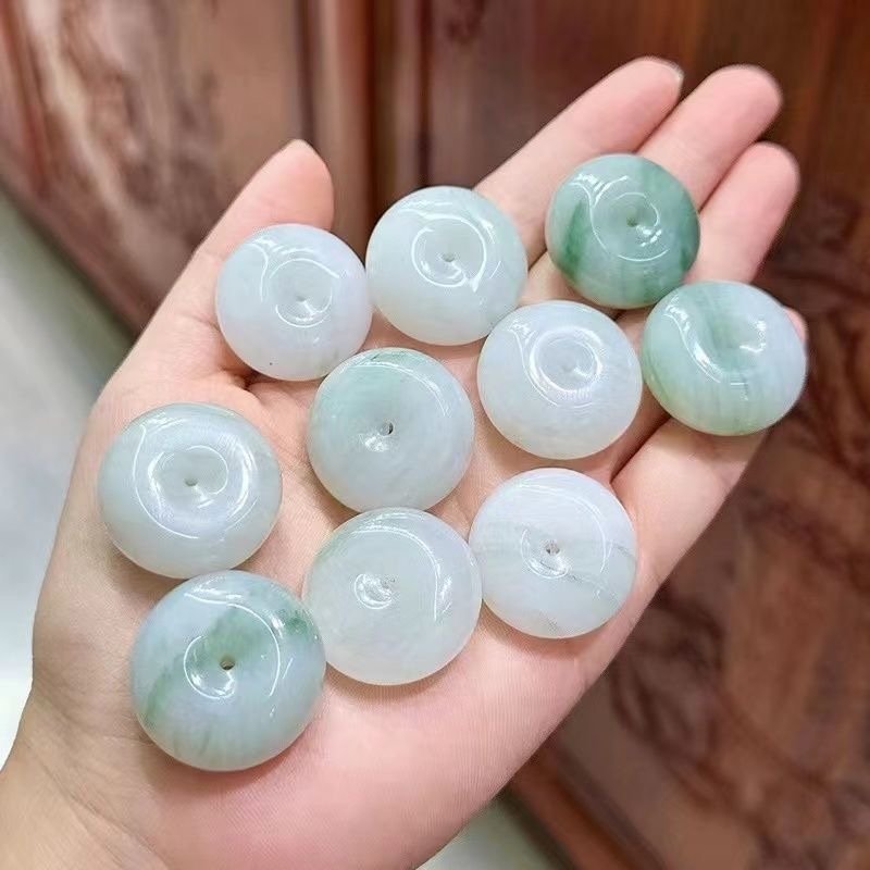 天然飘绿玉石天山翠平安扣吊坠项坠飘花大人儿童款挂件玉坠礼物