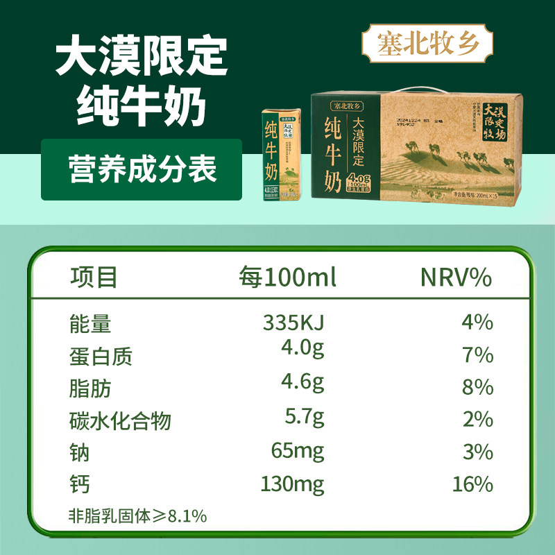宁夏塞北牧乡4.0蛋白纯牛奶大漠绿洲送礼200mlx10盒早餐营养学生
