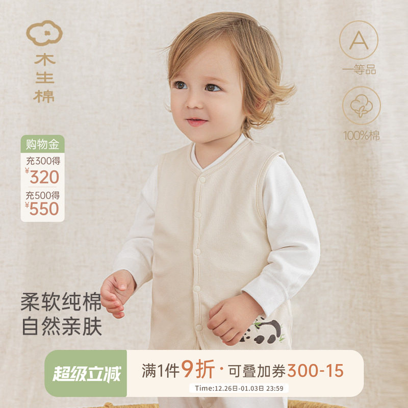 双面穿木生棉男女宝宝马甲外套春秋季婴儿纯棉上衣服坎肩背心外套