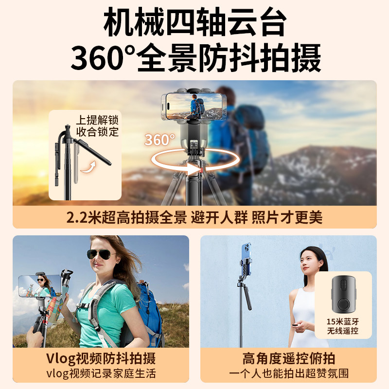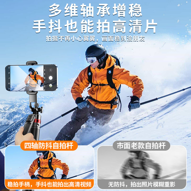 真四轴防抖2025新款自拍杆落地三脚架手机拍照直播支架旅游便携自拍神器360度旋转手持演唱会视频通用拍摄架