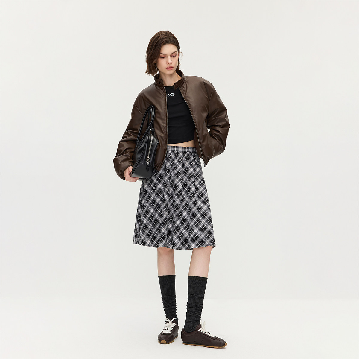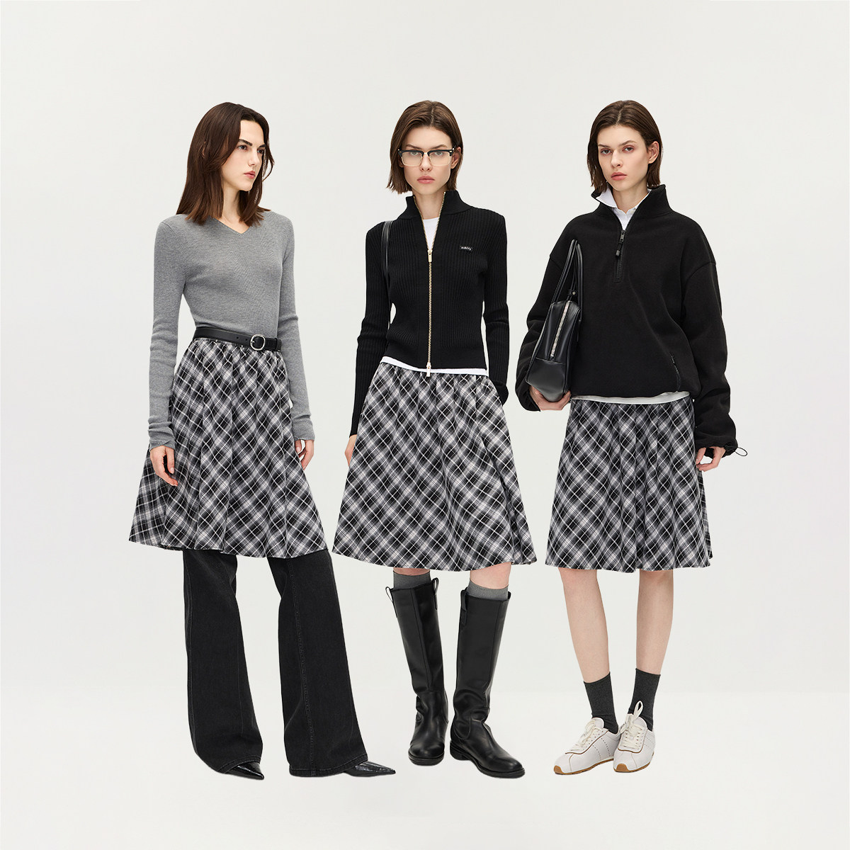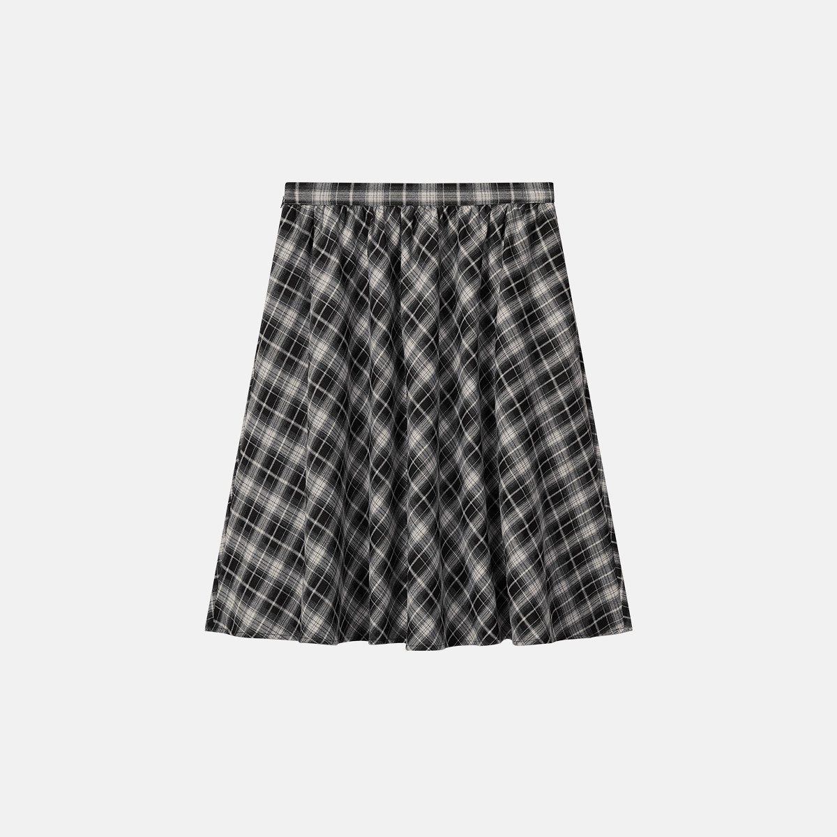 OCHIRLY欧时力 磨毛格子a字半身裙中长款伞裙复古春夏