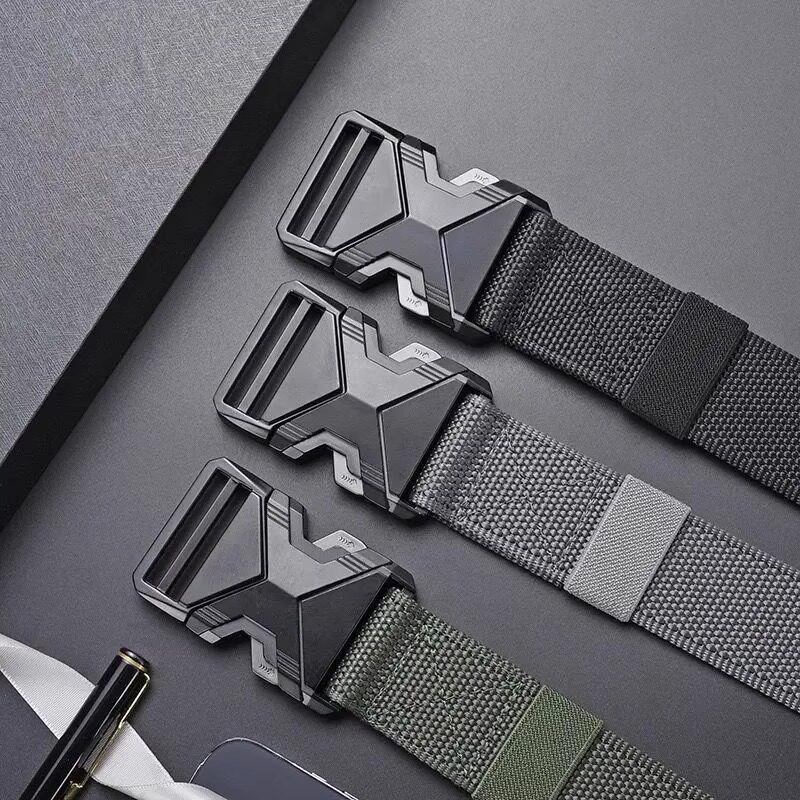 对插扣弹力皮带男自动扣时尚百搭潮流男士腰带户外尼龙帆布裤腰带