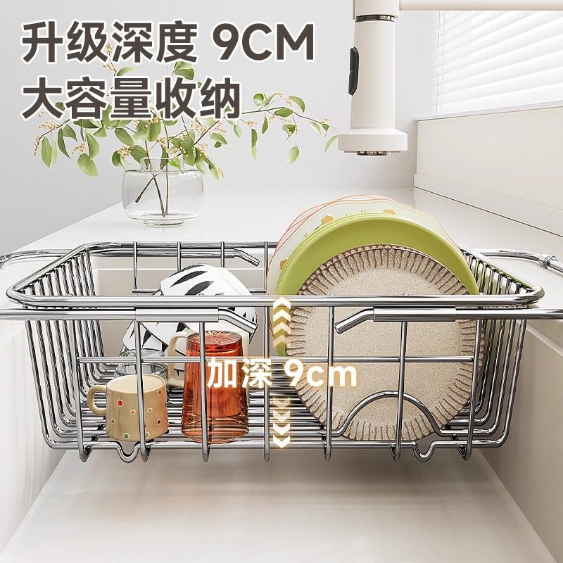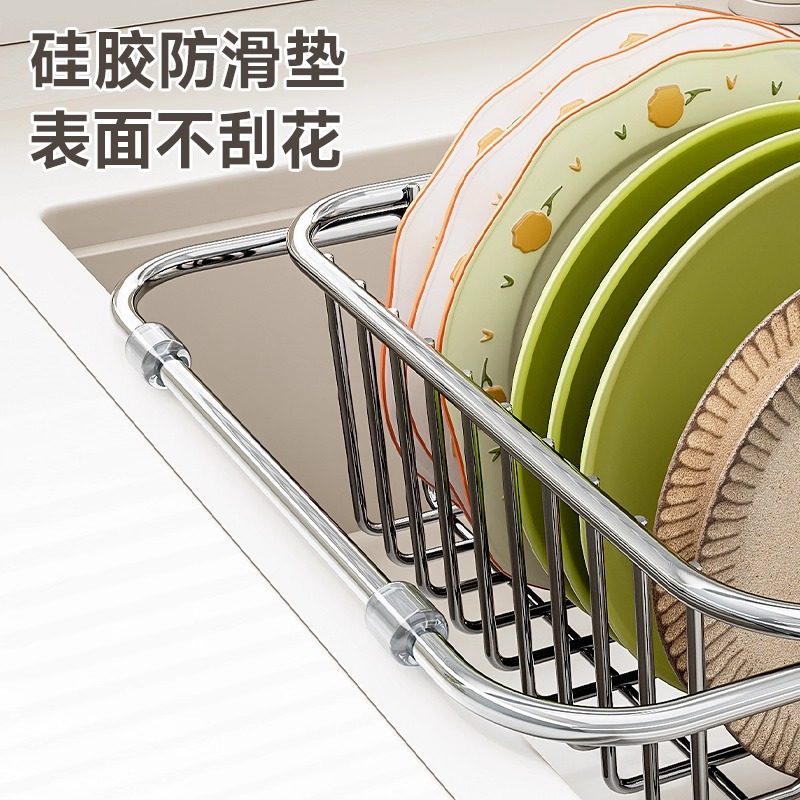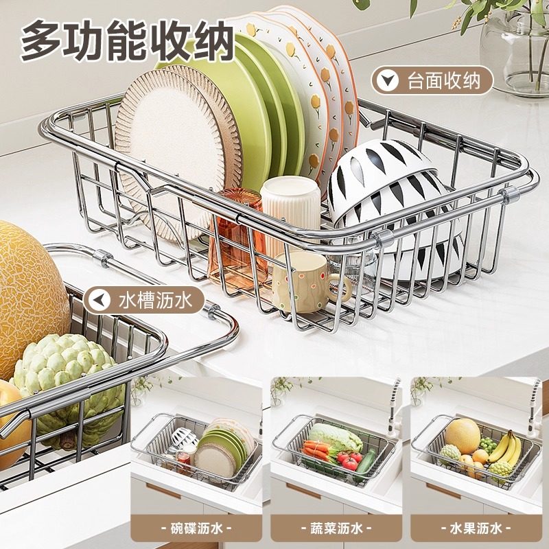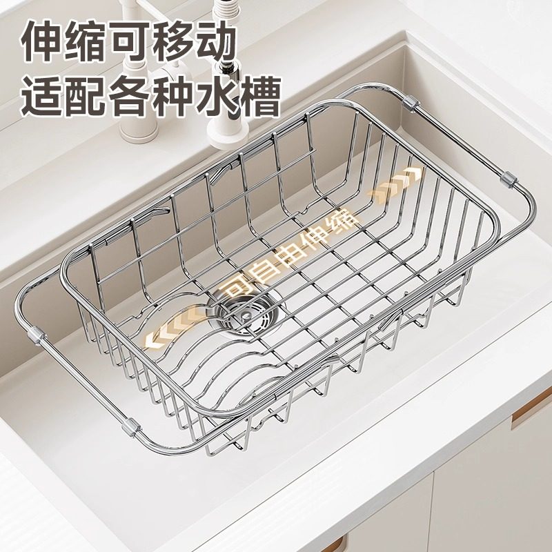 厨房不锈钢可伸缩沥水篮洗菜盆伸缩置物架收纳架厨房用品水槽台面