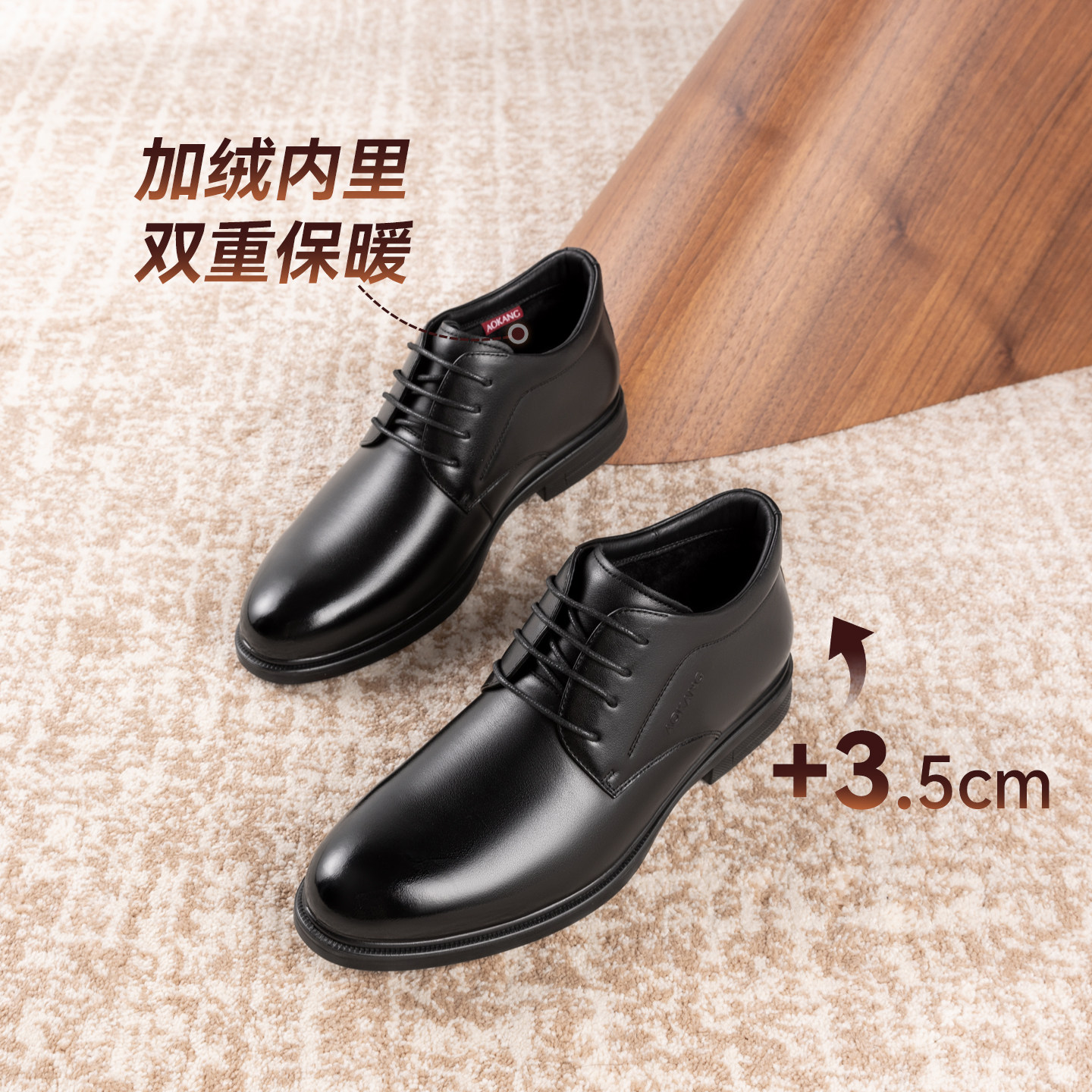奥康男鞋秋冬季英伦时尚格纹商务正装皮鞋真皮舒适增高新郎结婚鞋
