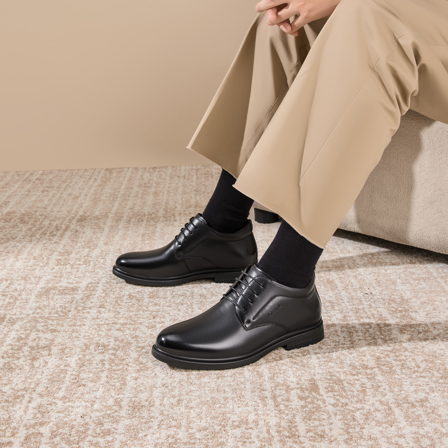 骆驼2025冬季舒适休闲加绒皮鞋男结婚新郎正装商务真皮增高德比鞋