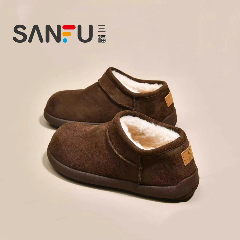 三福真皮小土豆勃肯鞋雪地靴女2025冬季新款厚底加绒加厚保暖棉鞋
