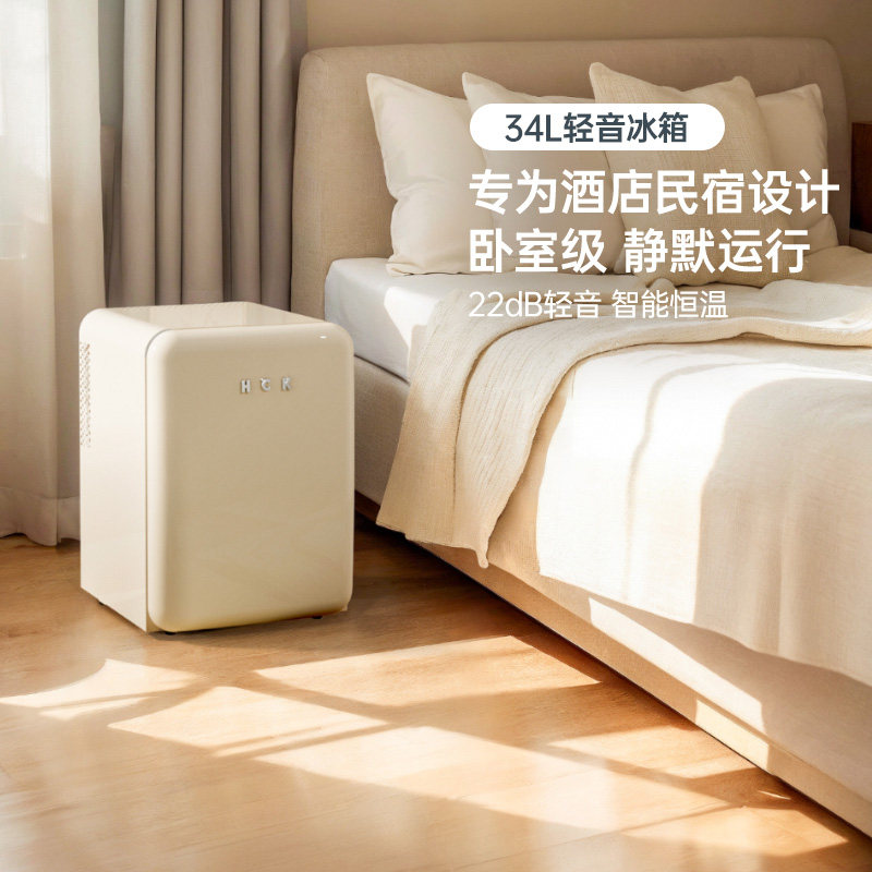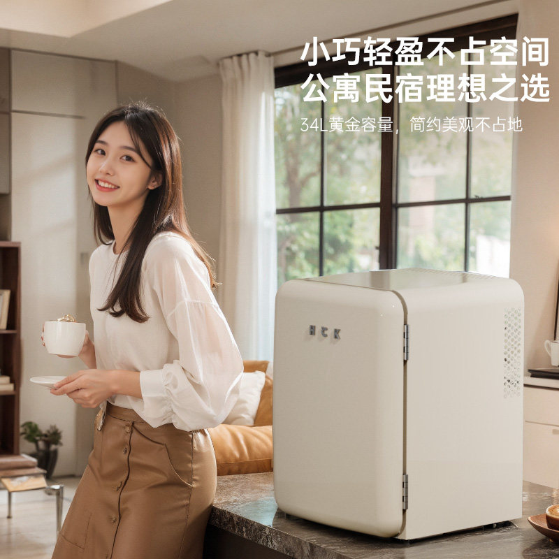 HCK哈士奇复古小冰箱半导体制冷家用单门轻音小型卧室高颜值34L