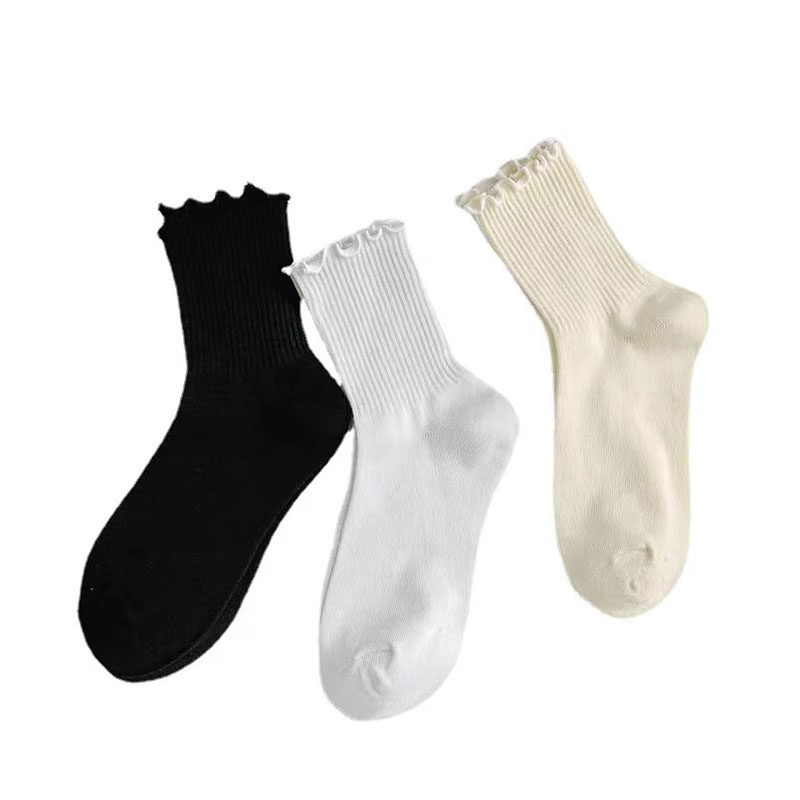 夏天袜子女夏季薄款中筒袜荷叶边堆堆袜白色袜子日系女袜黑色甜美