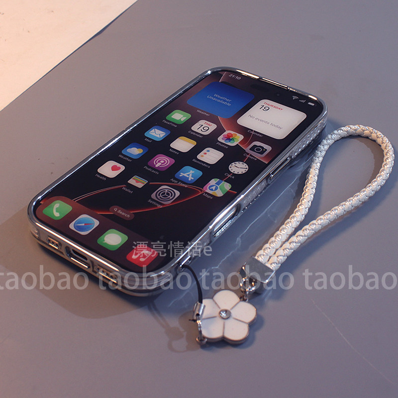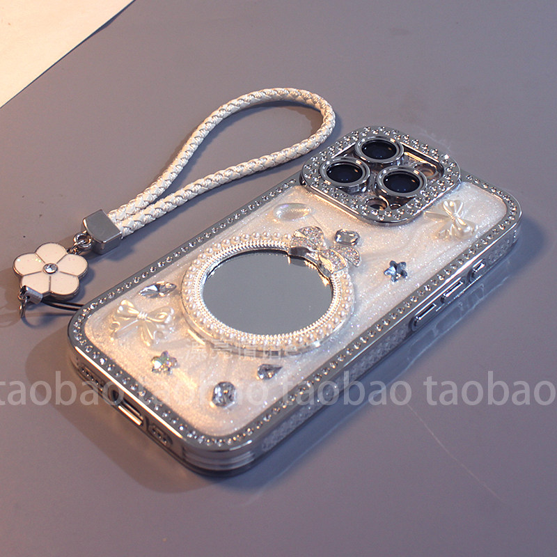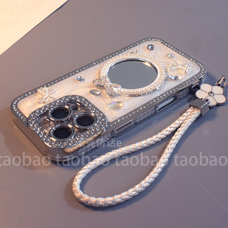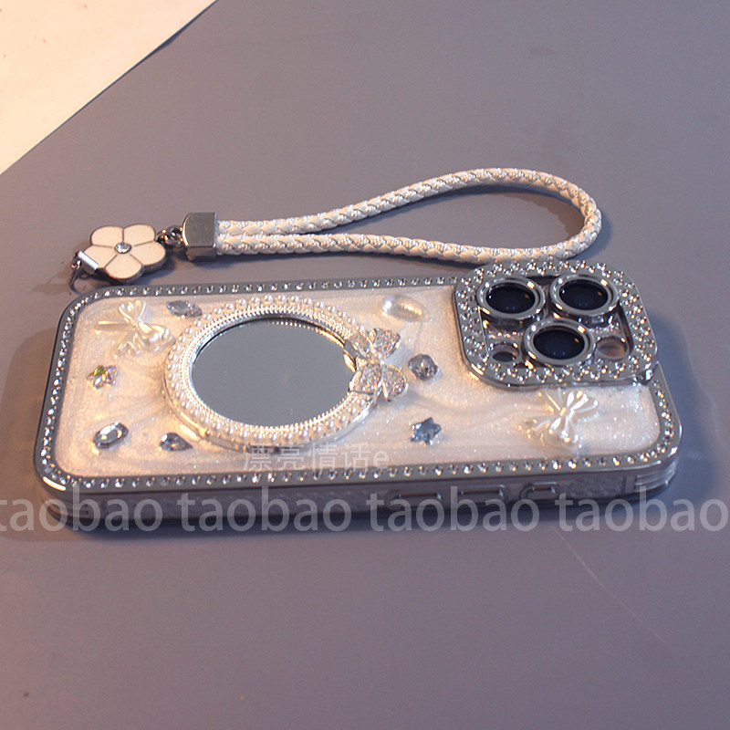 适用于iPhone17promax手机壳苹果16/15/14/13/12/11立体镶钻奶白蝴蝶结镜子16pro新款简约plus硅胶全包防摔套