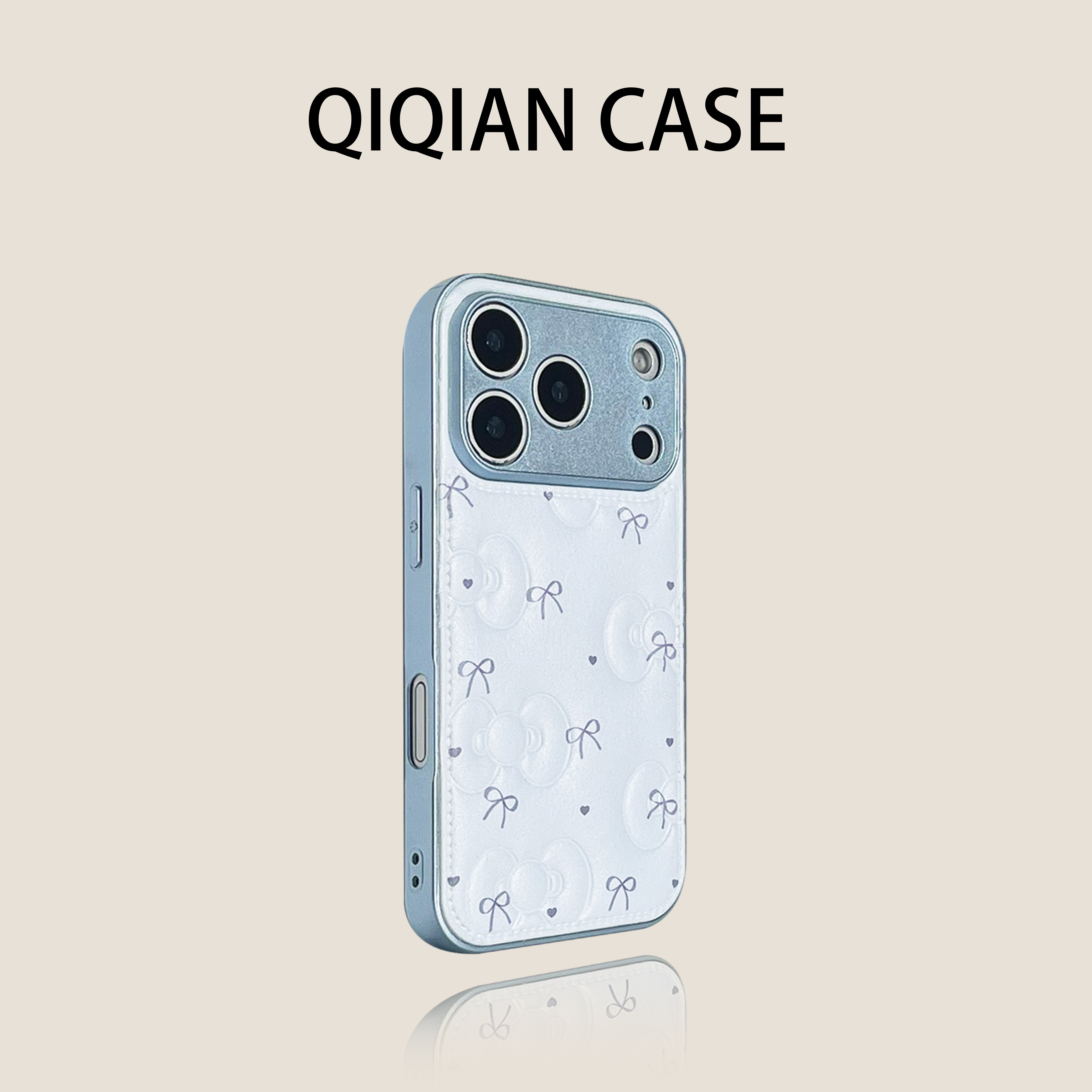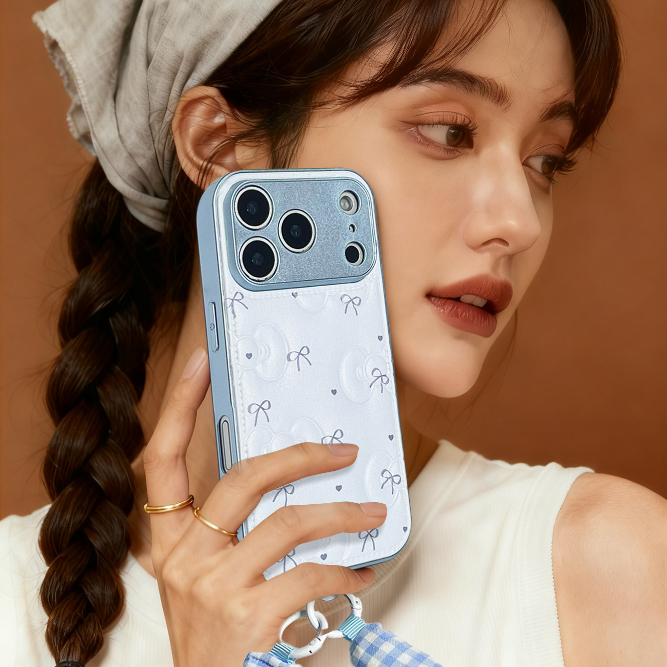 启乾 新款肤感直边鼓包蝴蝶结腕带iPhone17/16手机壳适用苹果15/14promax皮质软壳链条挂绳趣味可爱少女ins风