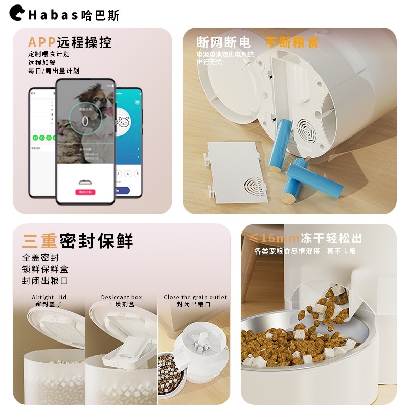 哈巴斯自动喂食器猫咪智能APP控制远程定时定量投喂猫粮喂食机
