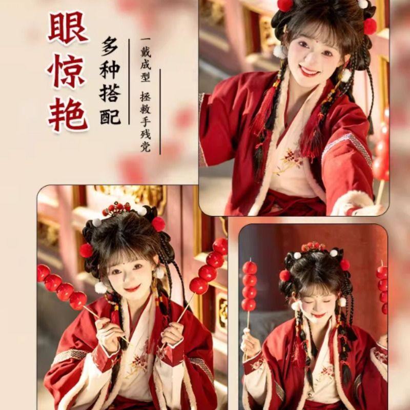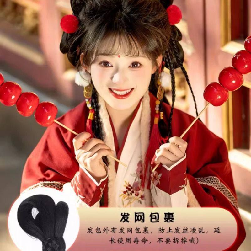 儿童汉服假发一体式古风盘发发髻女童蝴蝶结发包古装头饰垫发造型