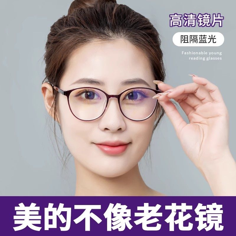 老花镜女高档时尚树脂年轻超轻防蓝光 疲劳高清洋气老人老光眼镜