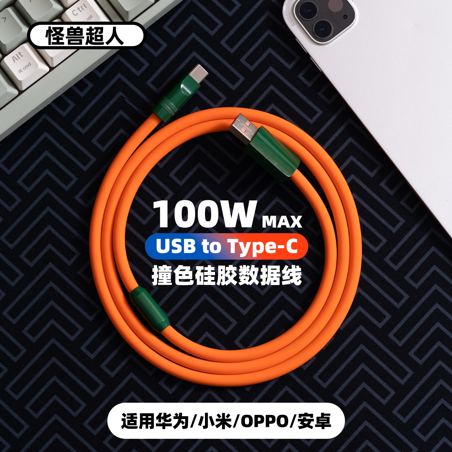 怪兽超人丨6A快充typec适用华为mate80promax荣耀100W数据线小米17promax一加OPPO安卓vivo手机90W闪充电器线