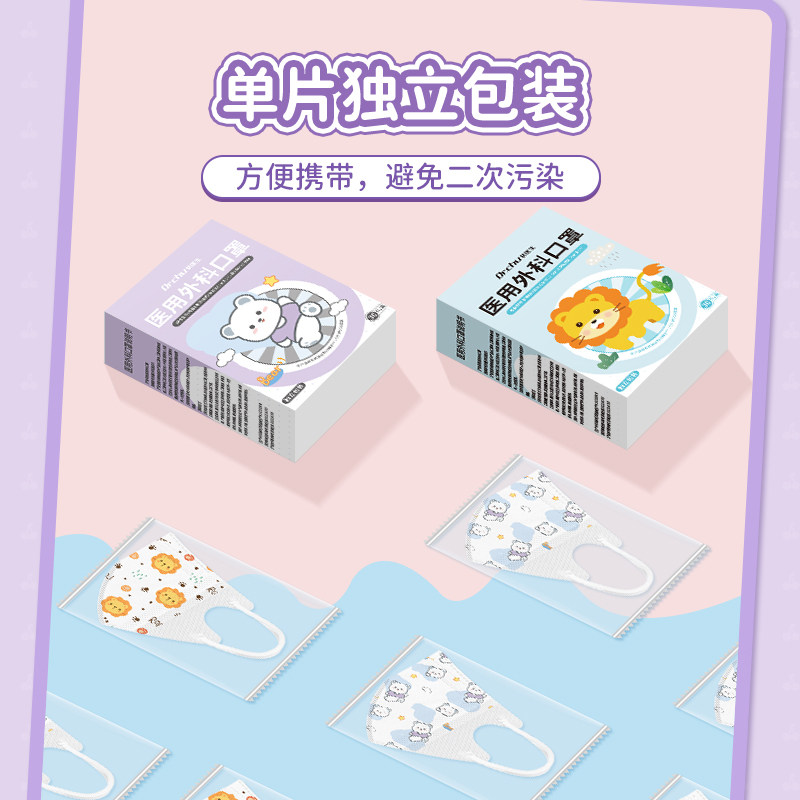 初医生医用外科口罩儿童8到12岁5小孩宝宝3到6岁上学专用独立包装