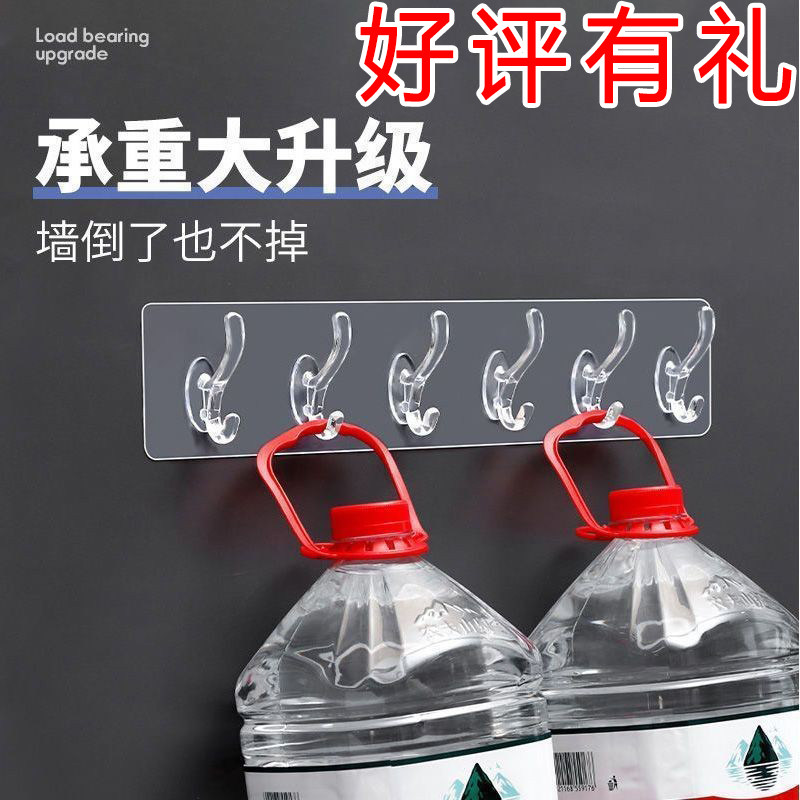 抢强力粘贴无痕挂钩门后浴室厨房免打孔水晶长条粘钩承重粘胶连排