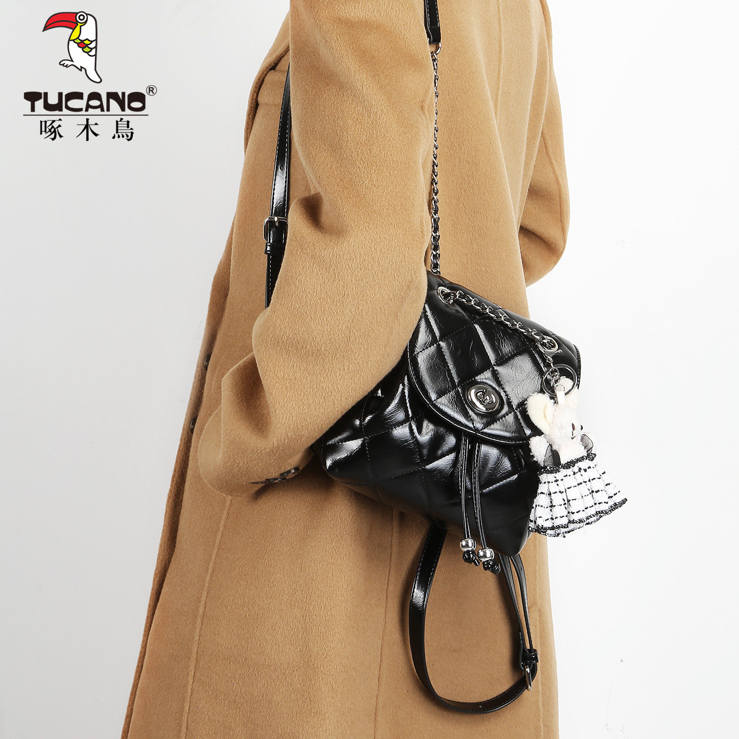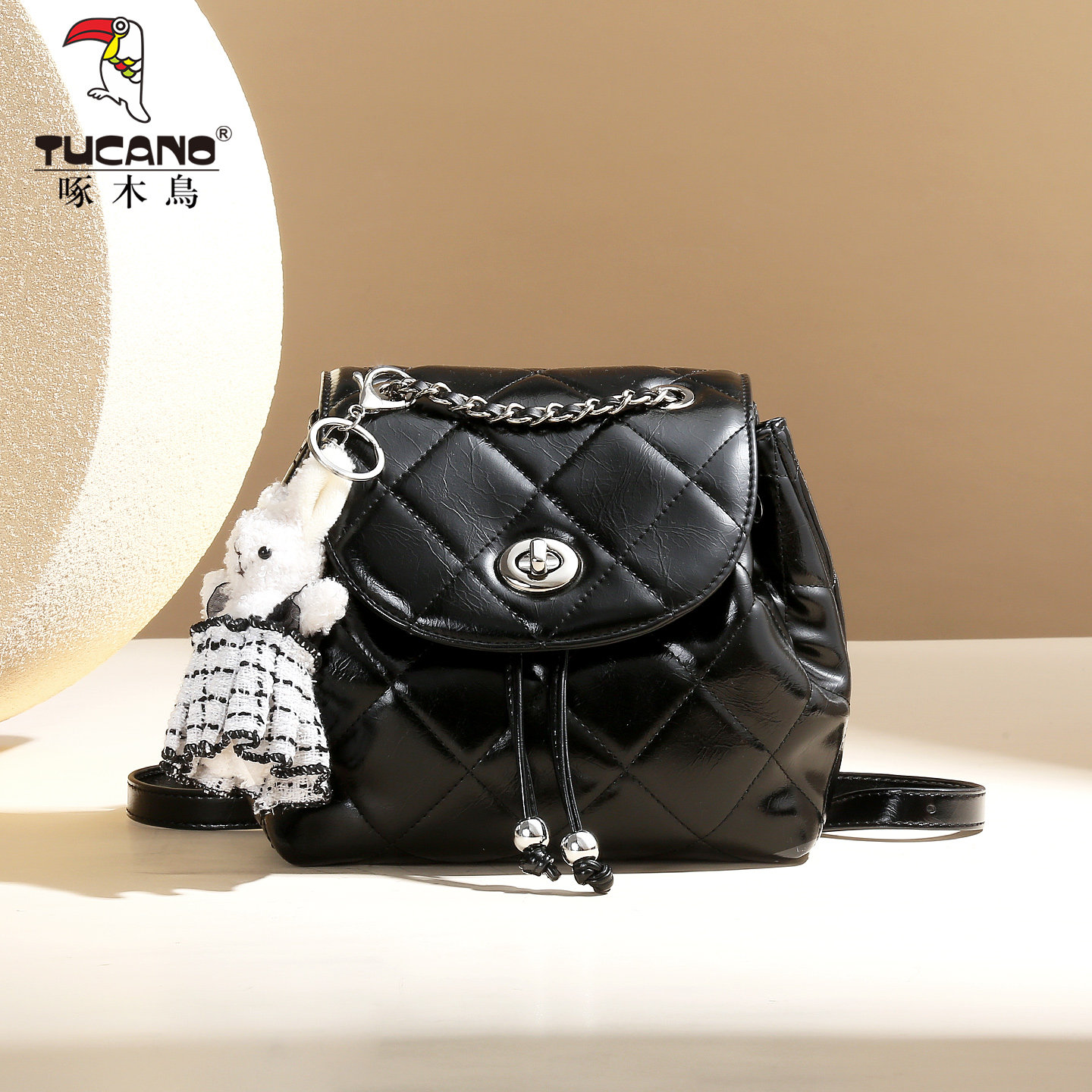 啄木鸟小号背包女士2025新款时尚百搭通勤高级感小香风菱格双肩包