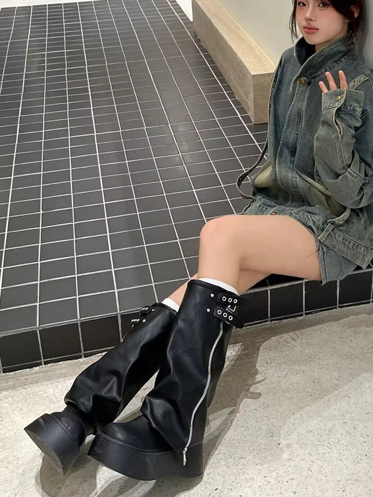 六点大叔厚底两穿美拉德骑士靴女秋冬新款小个子增高过膝长筒靴子