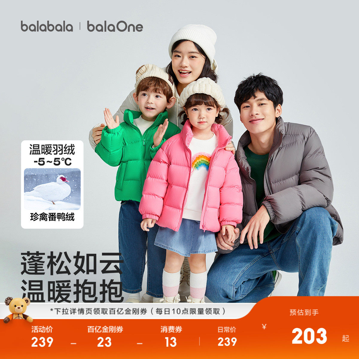 巴拉巴拉儿童羽绒服男童宝宝童装女童冬装亲子装洋气外套立领时尚