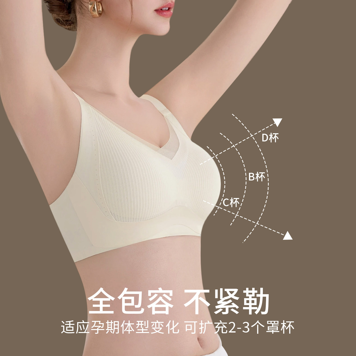 润微提拉女王内衣女大胸显小无痕大码调整防下垂收副乳粉底液文胸