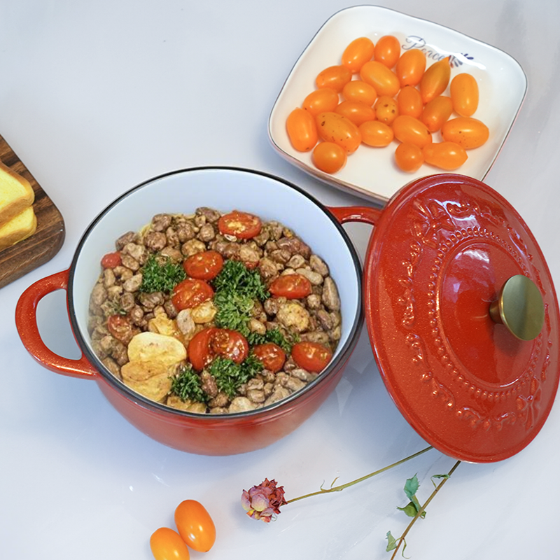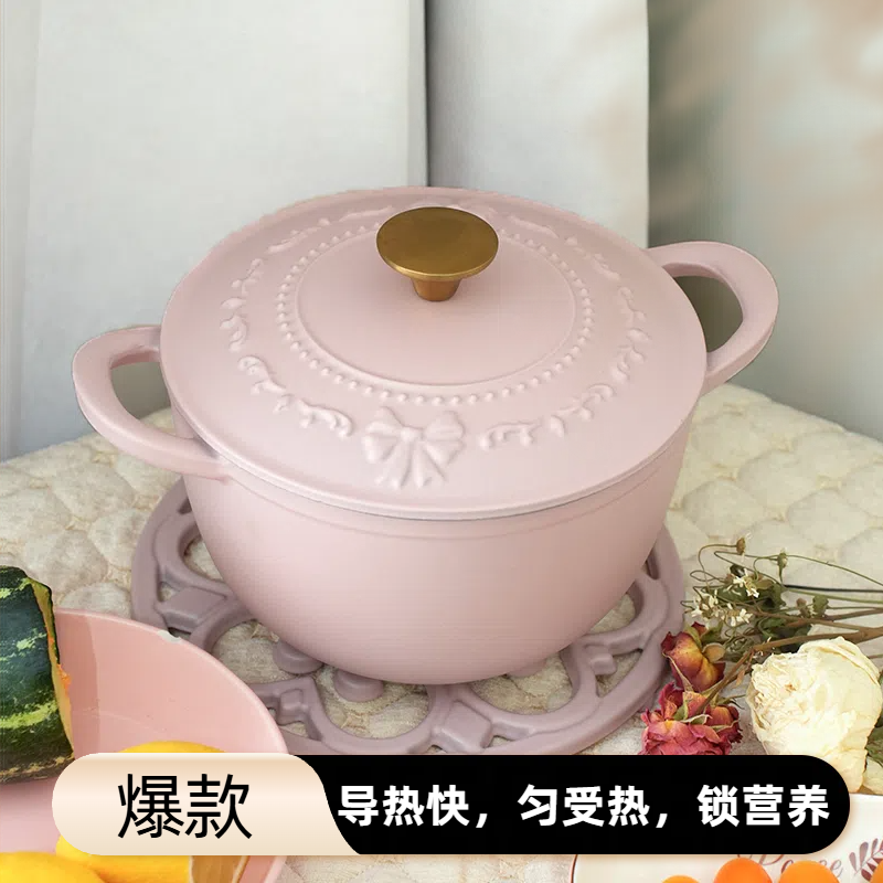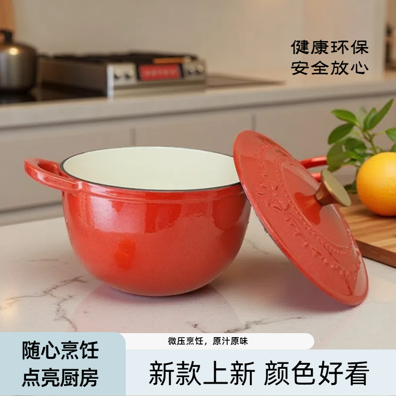 厨仕派新款浮雕铸铁珐琅炖锅汤锅高颜值珐琅锅零售批发小汤锅