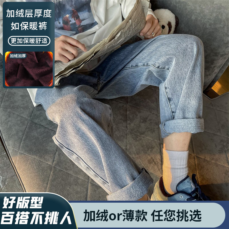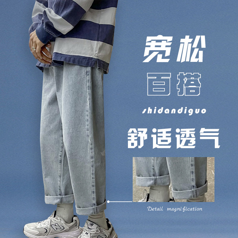 牛仔裤男宽松直筒2022新款潮牌ins潮流百搭秋冬款小脚春秋季裤子