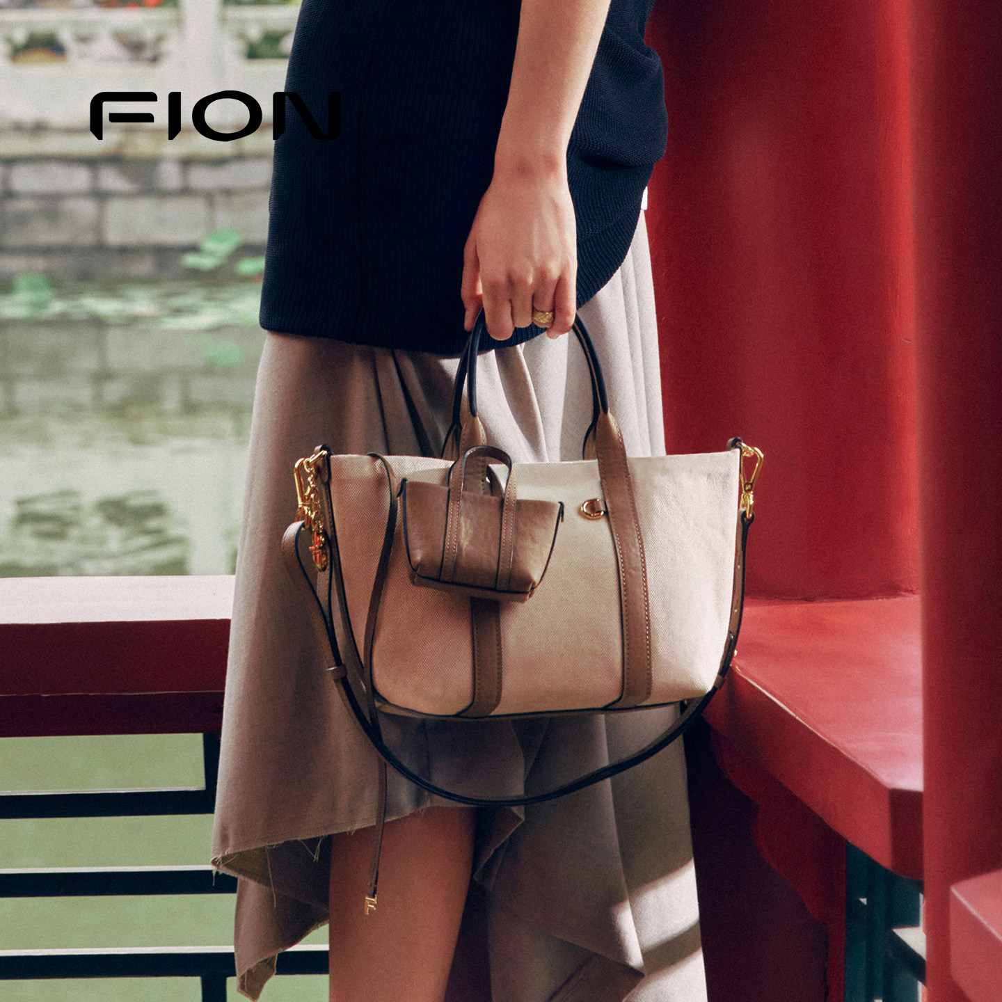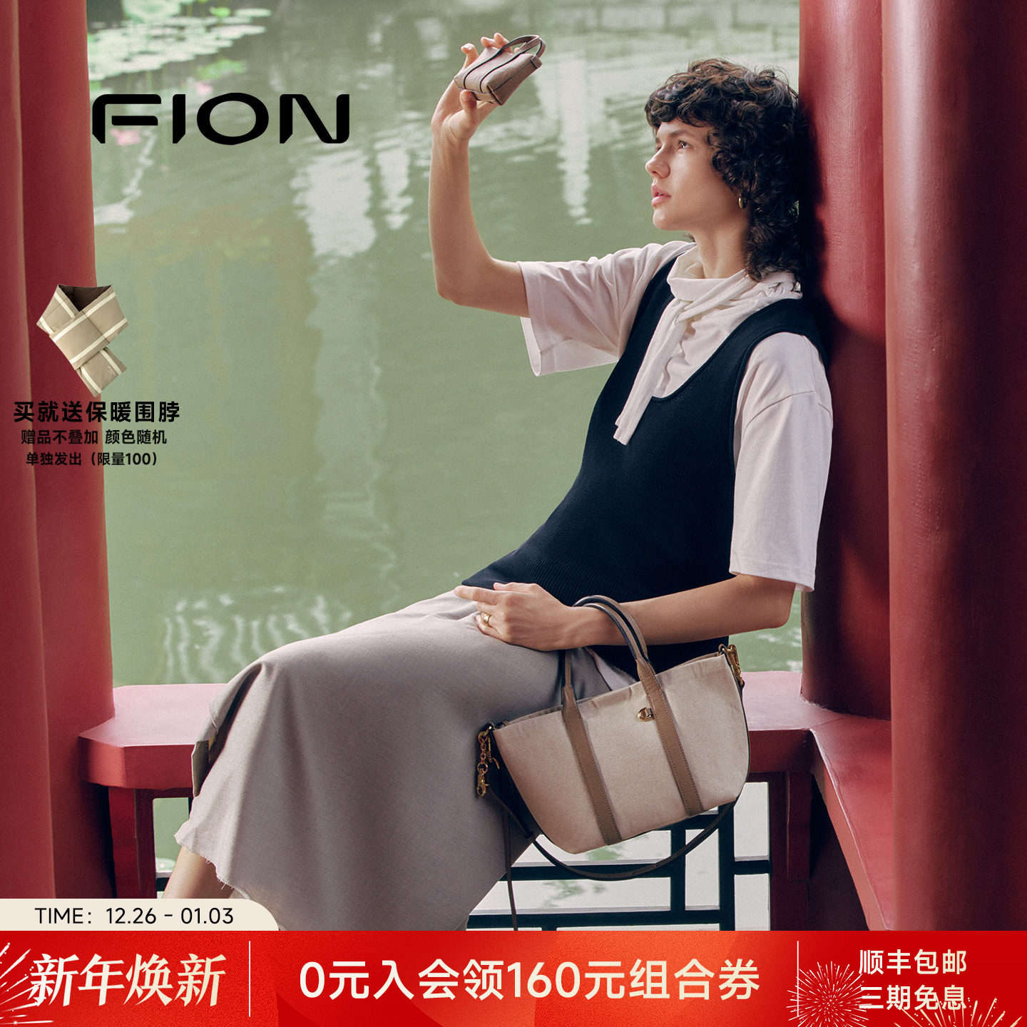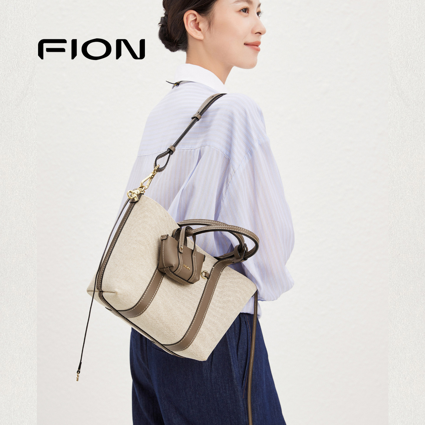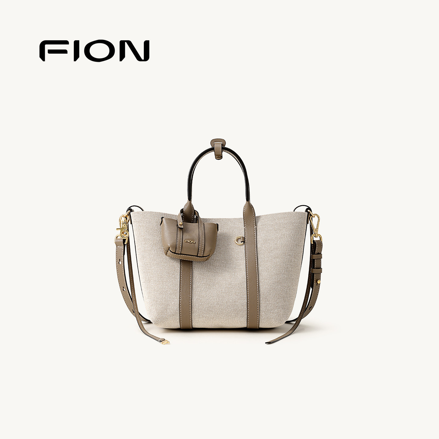Fion/菲安妮女包新款女式帆布托特包小篮子手提包通勤单肩斜挎包