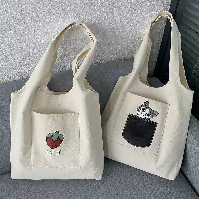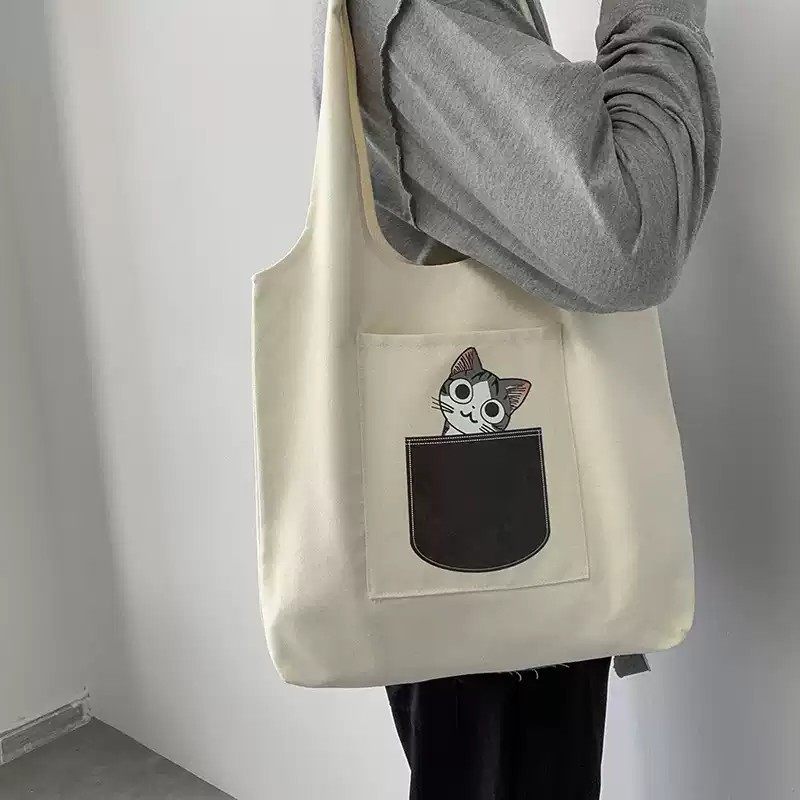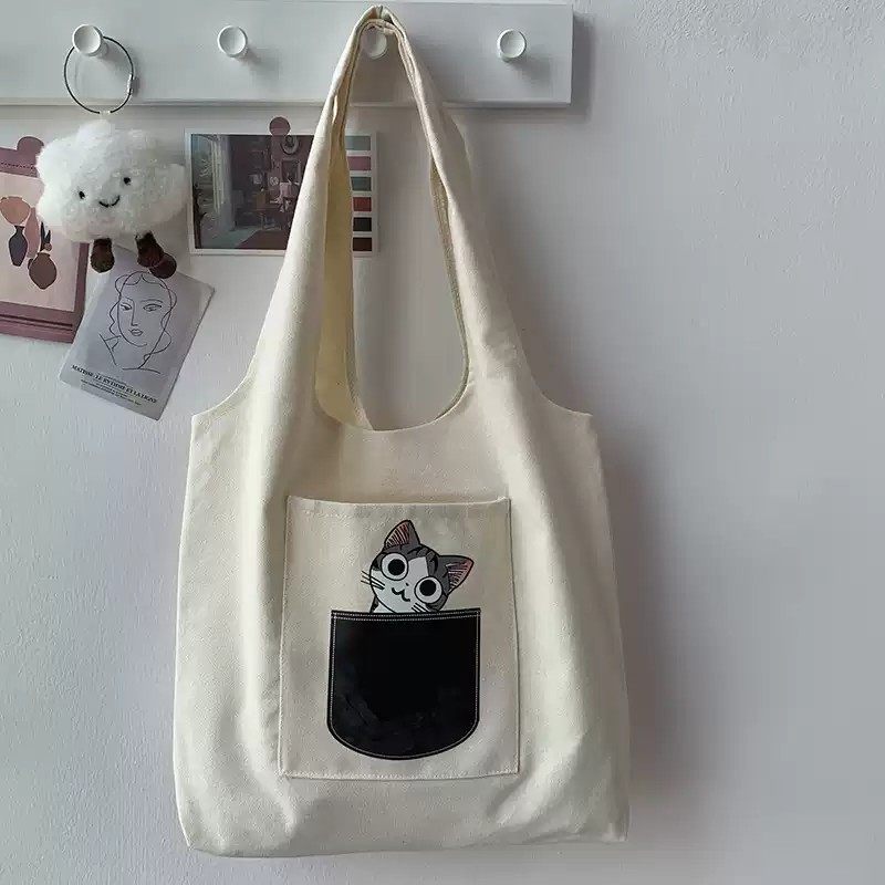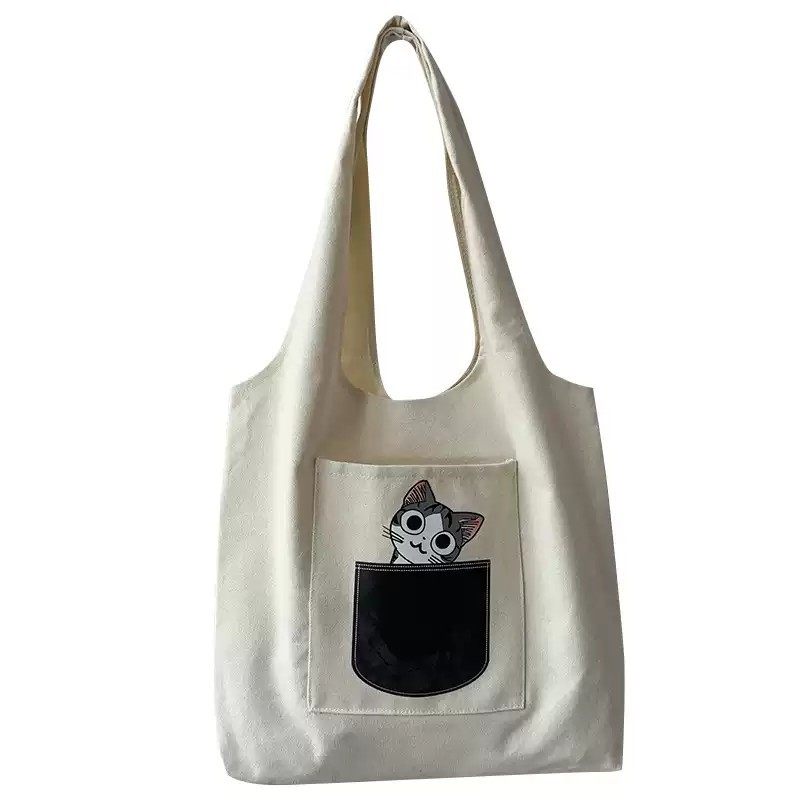 日系学生单肩帆布包女夏文艺小众大容量托特包手提布袋儿休闲黑色