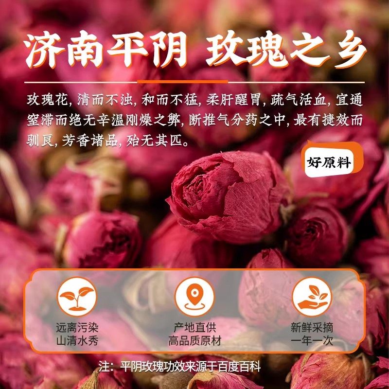 平阴玫瑰花茶100g药食干花蕾重瓣玫瑰无硫正品玫瑰花干花泡茶两用