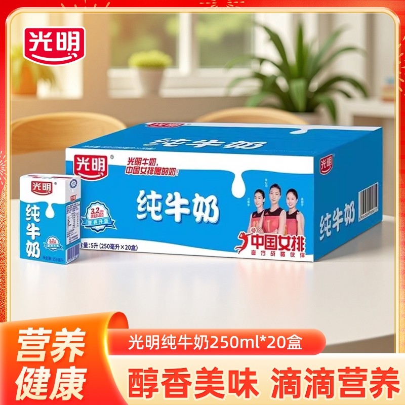 光明纯牛奶250ml*20盒学生早餐健康美味全脂家庭装纯牛奶早餐奶