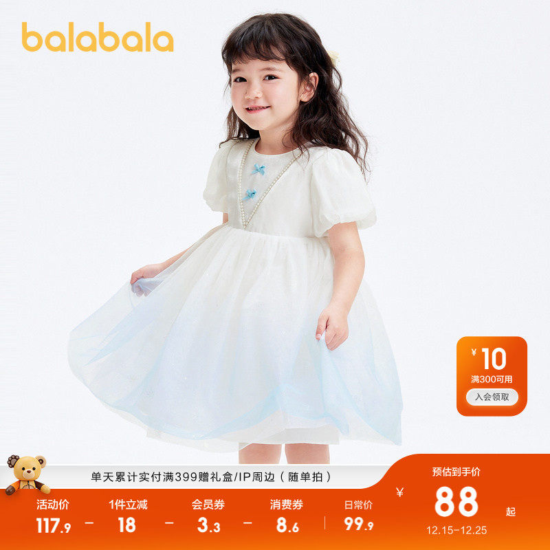 巴拉巴拉宝宝连衣裙蓬蓬网纱裙A字裙女童装2025秋季新款裙子儿童