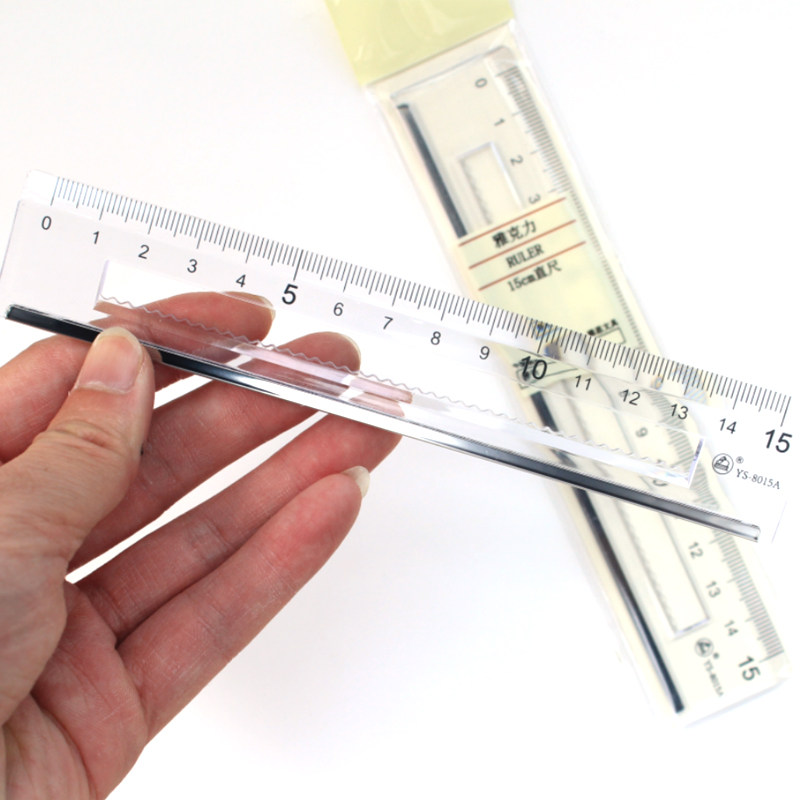 雅思8015金属包边直尺15cm波浪尺子切割金属包边尺公亚克力透明尺