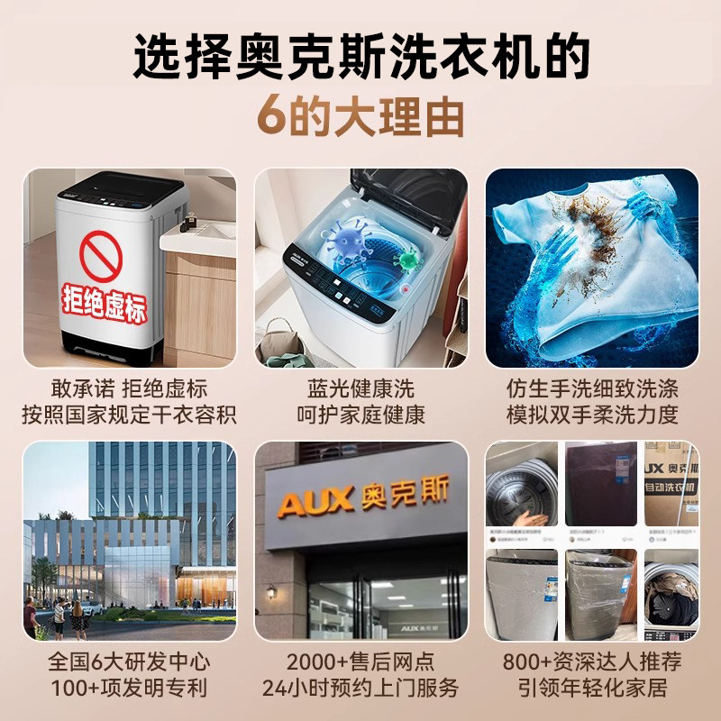 奥克斯全自动高效能洗衣机8.5/10KG容量家用租房出租迷你洗衣机