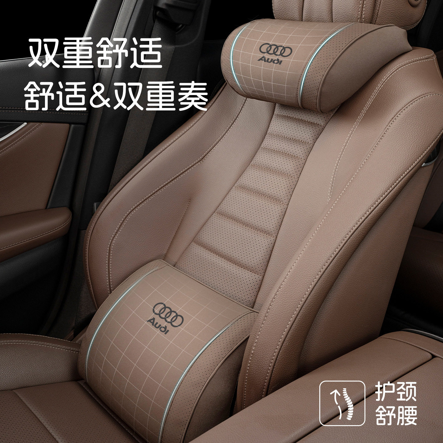 适用奥迪A4L/A3/A5/A6L/A7L汽车头枕护颈枕腰靠Q3/Q5L/Q6内饰用品