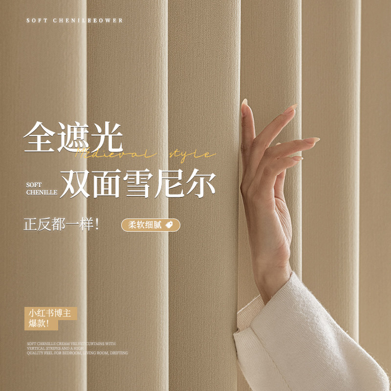 卧室窗帘2025新款双面同色雪尼尔奶油风客厅轻奢高级感加厚全遮光