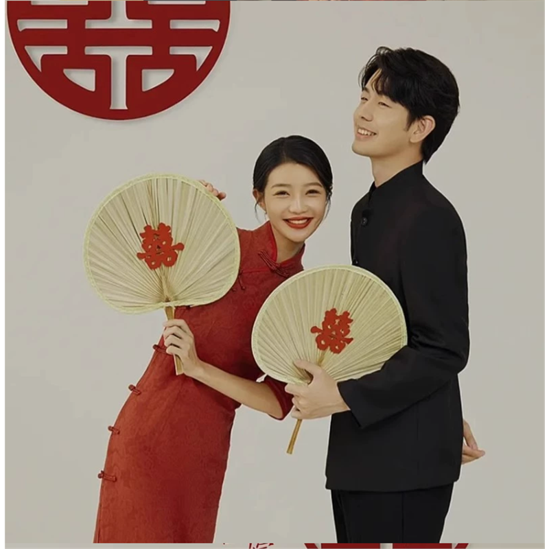 婚纱写真手拿草编手摇扇粽叶芭蕉扇影楼摄影道具蒲扇喜字绣字扇子