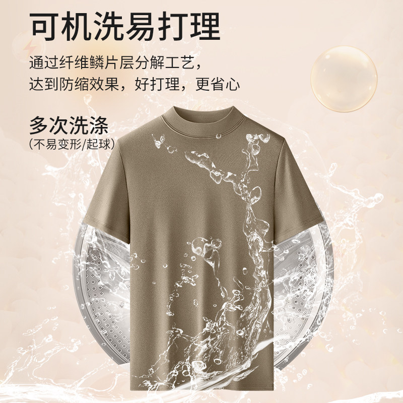 猫人半高领加绒德打底衫男士短袖t恤秋冬内搭加绒保暖半袖上衣服