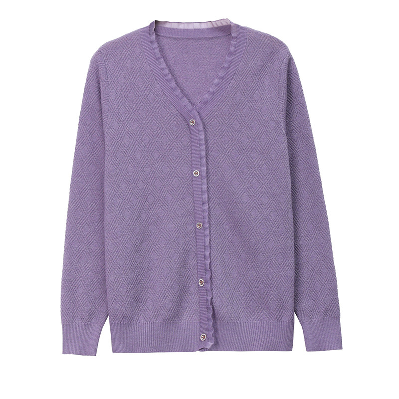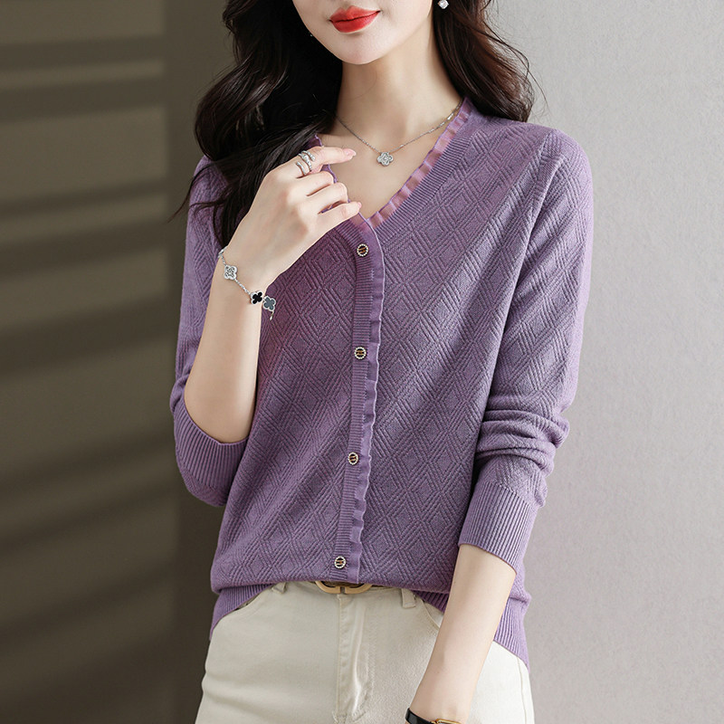 恒源祥蕾丝边针织开衫女士毛衣2025春装新款时尚洋气含羊毛针织衫