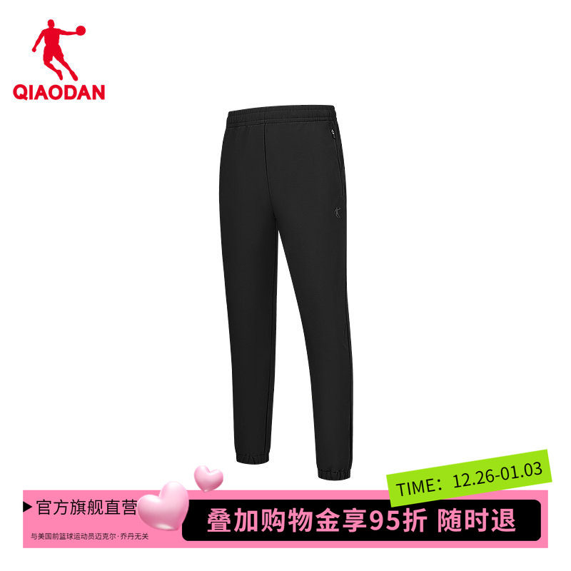 【商场同款】乔丹保暖加绒黑色长裤男士冬季新款跑步休闲裤束脚裤
