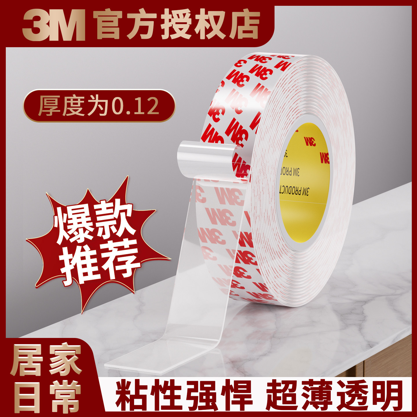 3M强力双面胶55236超薄高粘度半透明车家用墙贴挂钩照片相框固定无痕汽车尾翼etc耐高温儿童手工diy胶带粘胶