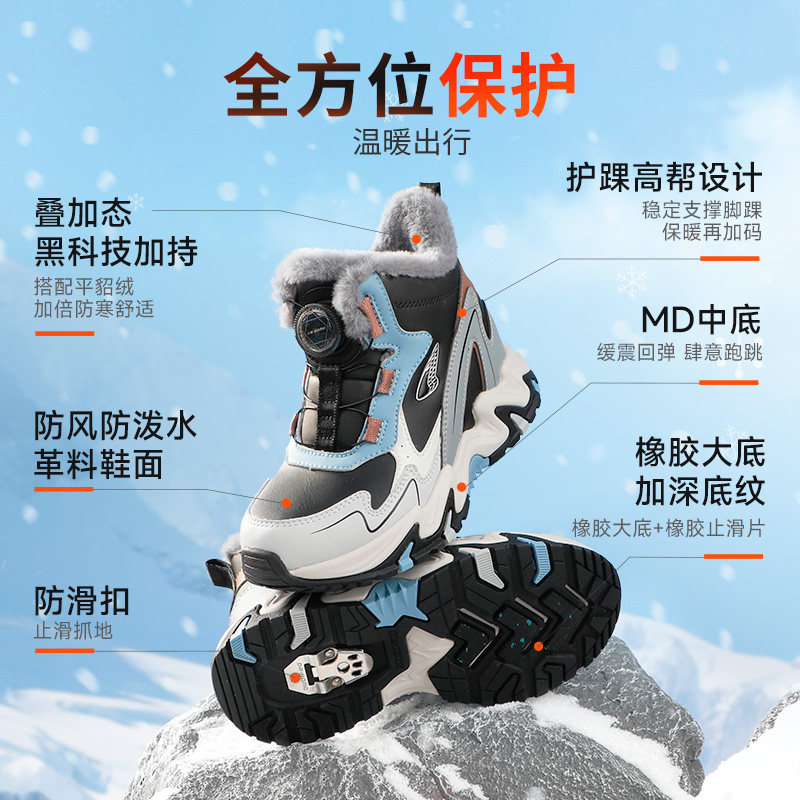 川尘3|鸿星尔克童鞋冬季加绒男中大童鞋子保暖加厚二棉休闲运动鞋