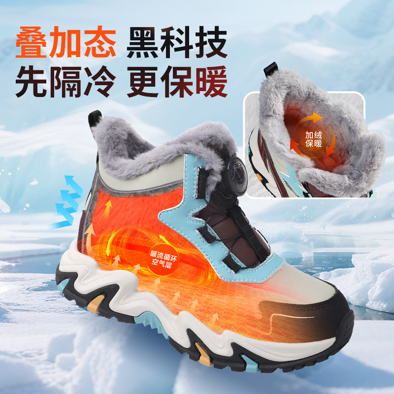 江博士童鞋休闲冬季旋钮扣男女儿童棉鞋加绒保暖