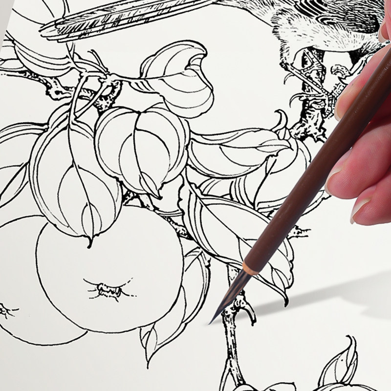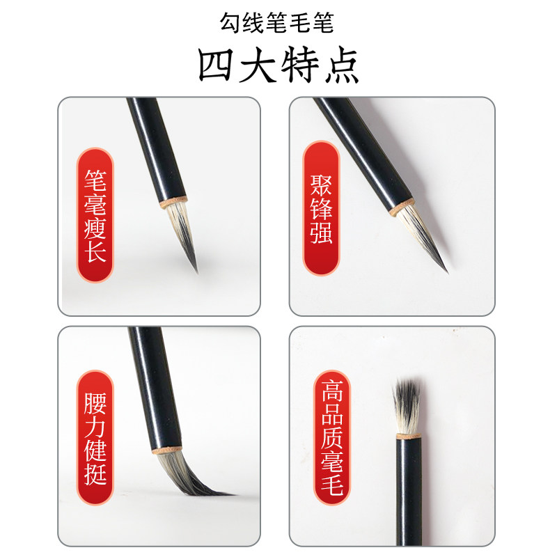 勾线毛笔国画工笔画专用极细毛笔初学者入门小楷书法套装狼毫花枝俏鼠须叶筋小红毛花鸟临摹白描描线文房四宝