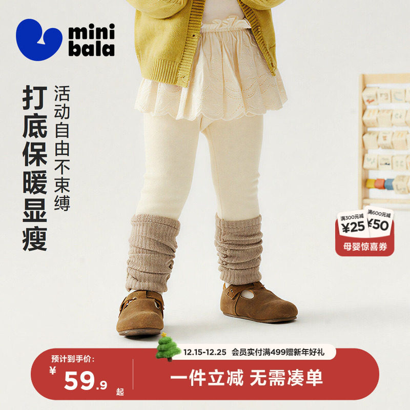 迷你巴拉巴拉女童儿童打底裤内里加绒亲肤柔软高弹甜美2025冬新款