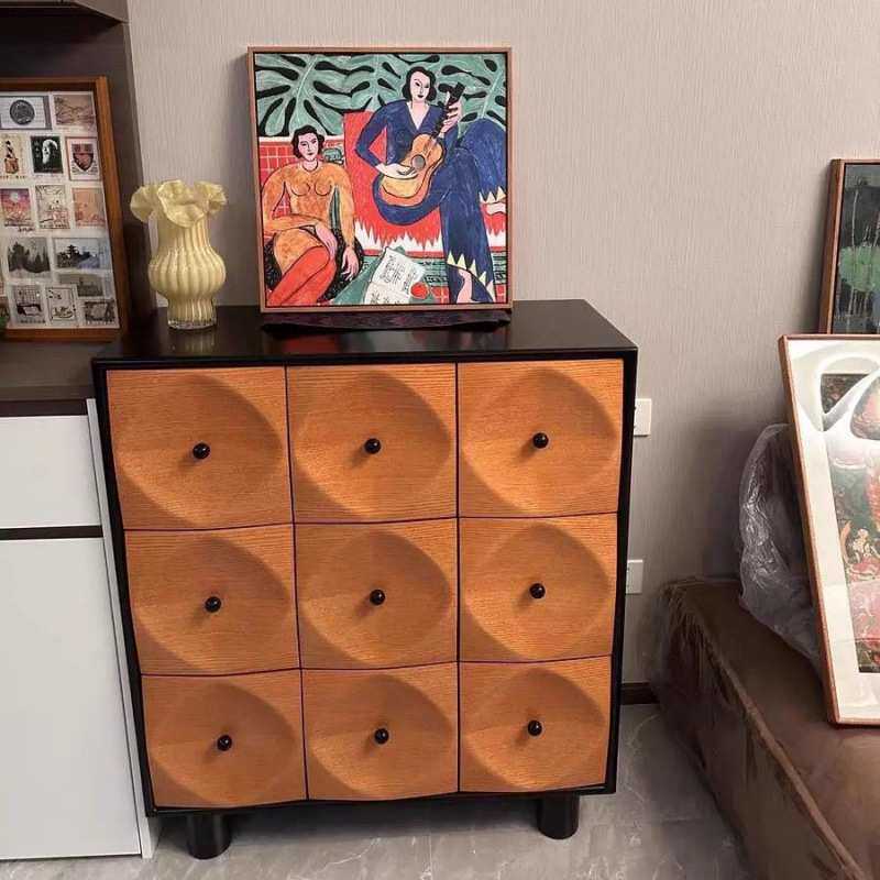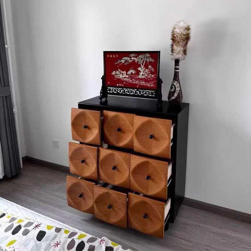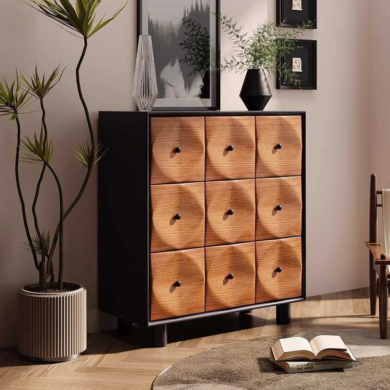 新款中古实木九斗柜家用卧室抽屉储物装饰柜客厅菱格沙发边柜鞋柜