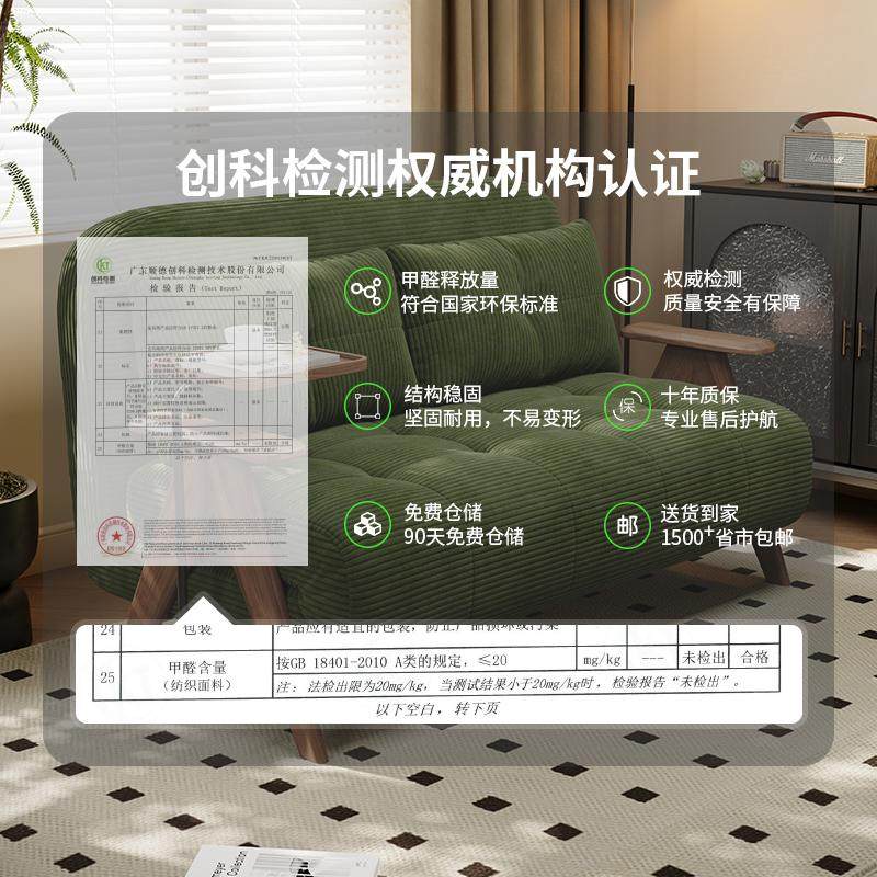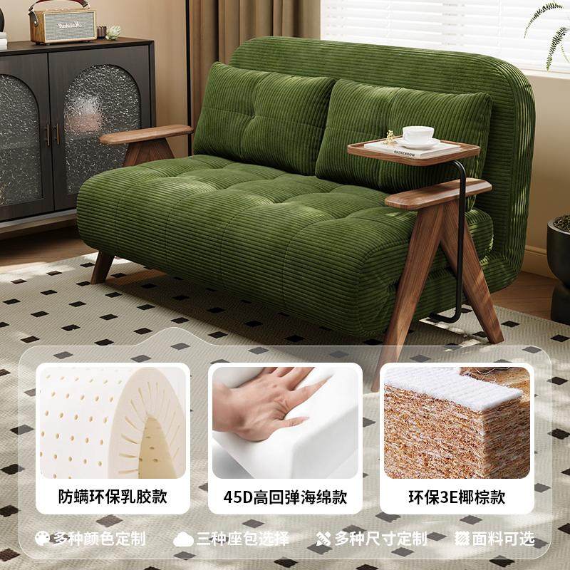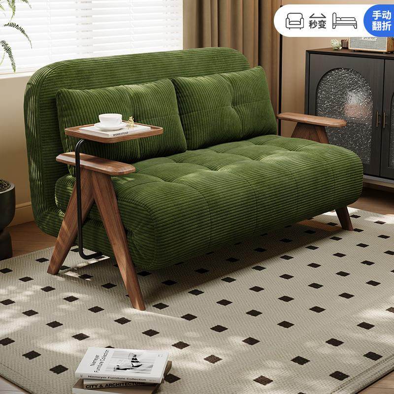 司朴多功能实木沙发床小户型客厅可折叠伸缩两用灯芯绒沙发单人