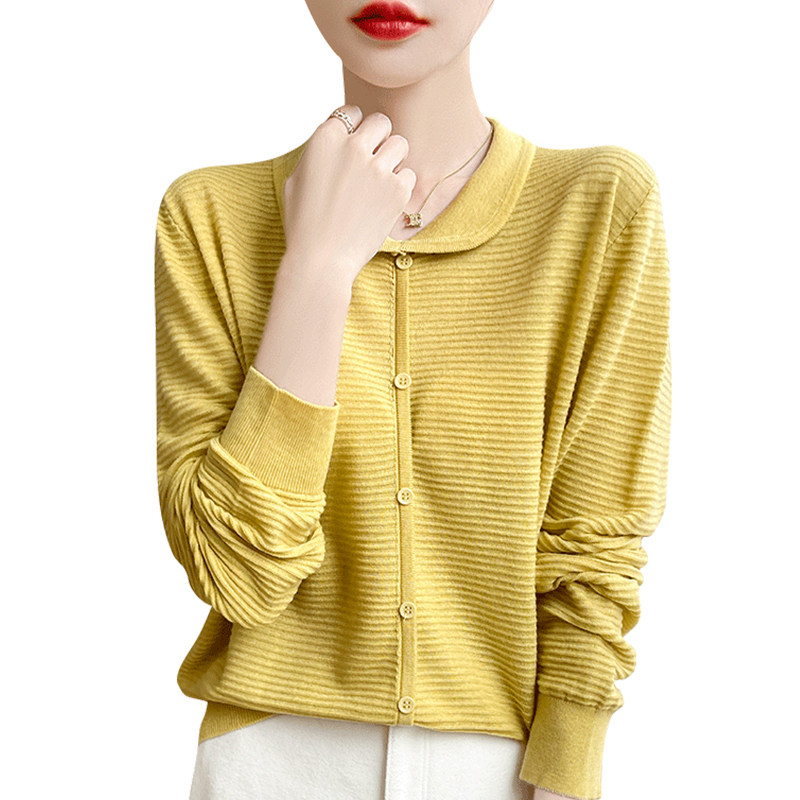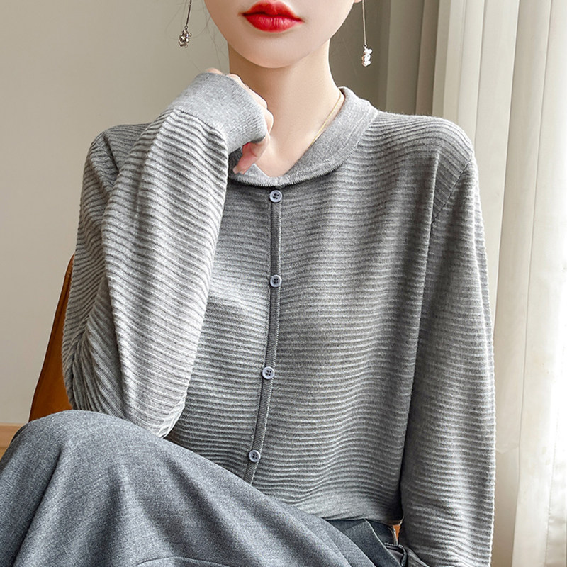 春秋薄款羊毛针织开衫女韩版圆领宽松短款羊绒衫外搭毛衣外套上衣