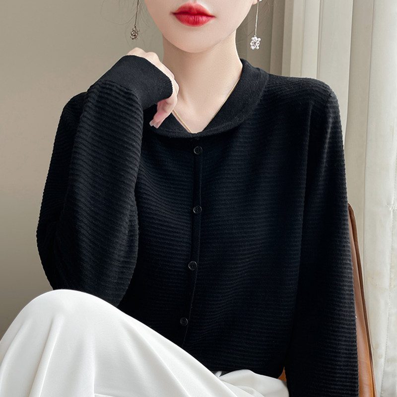 鄂尔多斯市断码羊绒开衫女春秋新款宽松毛衣外套翻领针织羊毛衫