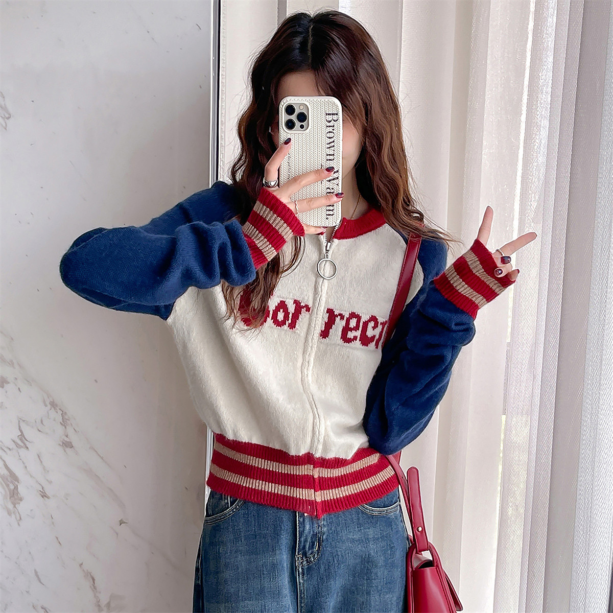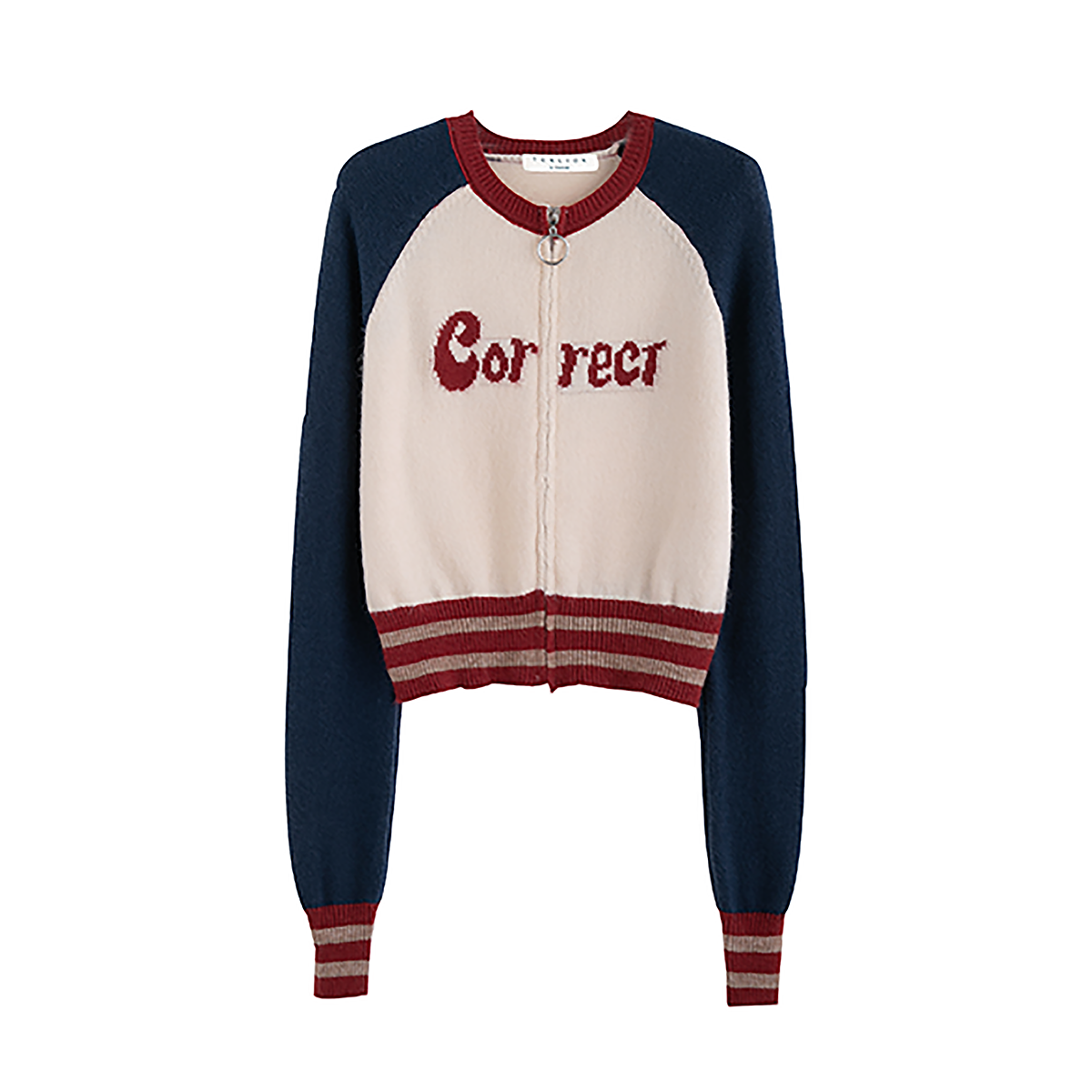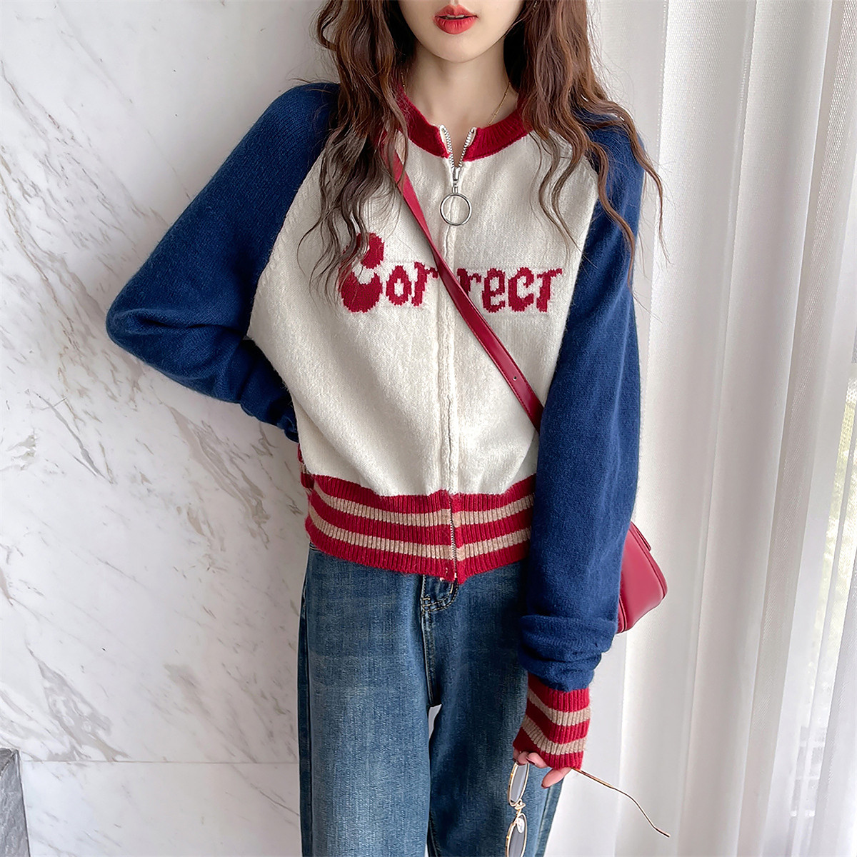 唐狮秋冬季女毛衣休闲风字母设计圆领拉链开衫时尚流行毛线衫tu